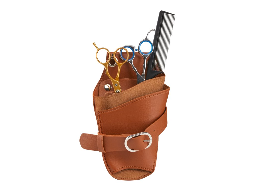 A fodrász olló táska T11 barna egy sokoldalú, elegáns és funkcionális eszköztároló minden profi fodrász és borbély számára. A tartós ökobőr anyagból készült táska számos rekesszel és zsebbel van ellátva, amelyek tökéletesek ollók, fésűk, csatok és más fodrászati kiegészítők rendszerezett tárolására.