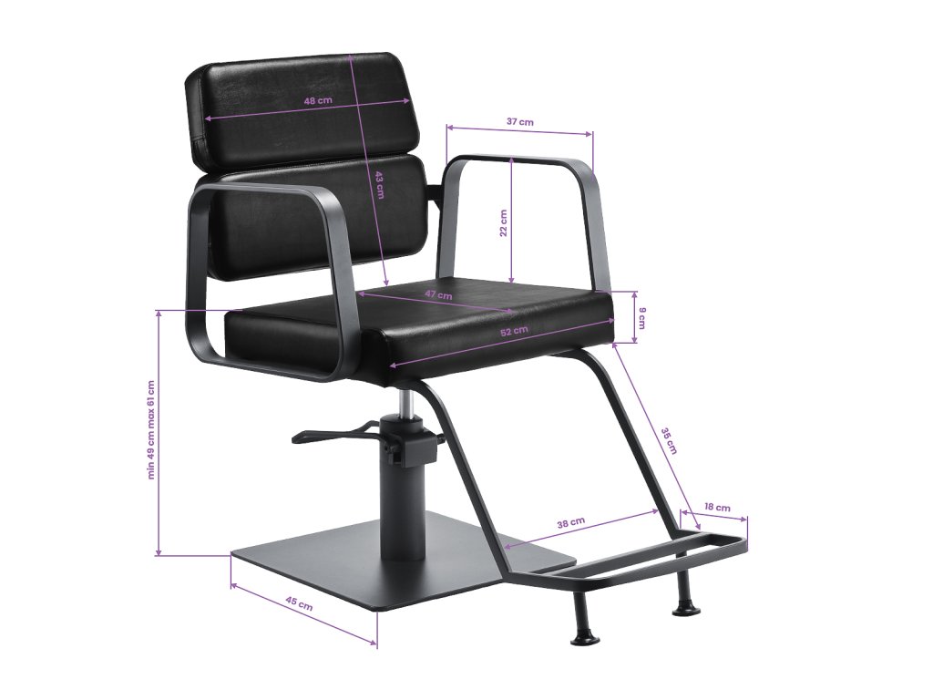Az ergonomikus fém kartámaszok hozzájárulnak a helyes testtartáshoz, ami megkönnyíti a precíz hajvágást és stylingot. A székhez stílusos lábtartó is tartozik, amely növeli a vendég komfortját és stabilitását.
