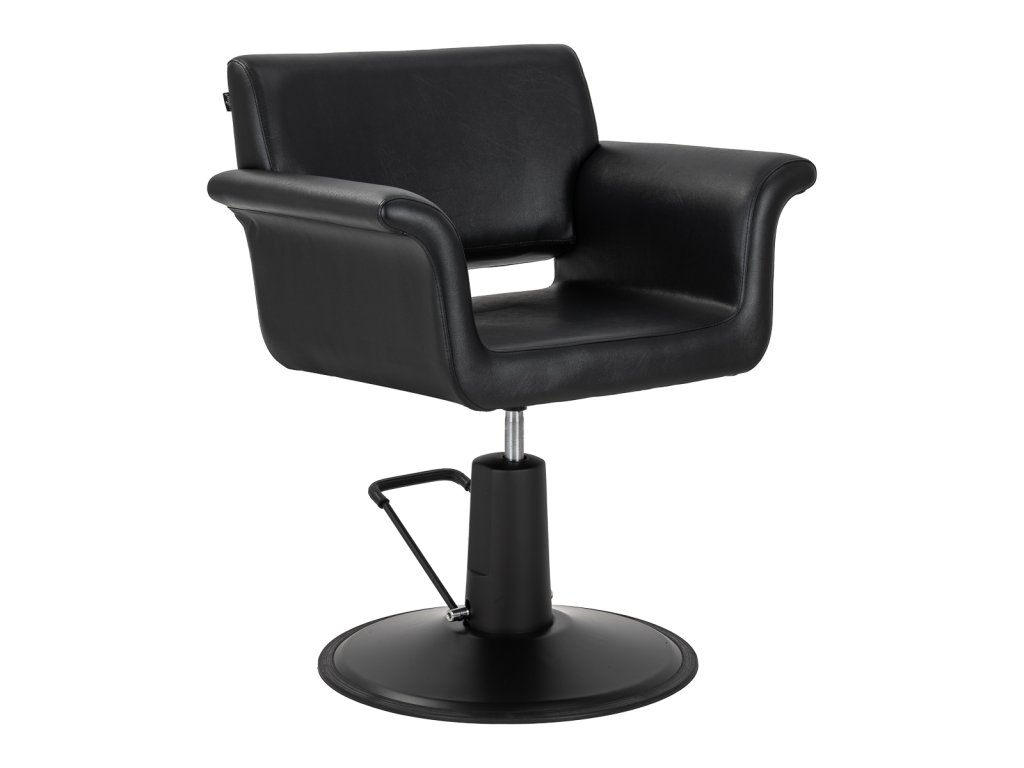 A Fodrászszék Largo – fekete hidraulikus emelőszerkezettel és fekete, kerek talppal a modern dizájnt, a kényelmet és a tartósságot ötvözi. A 130 kg teherbírásnak köszönhetően ideális választás mindennapi, intenzív szalonhasználatra – kényelmes a vendégnek és praktikus a fodrász számára.