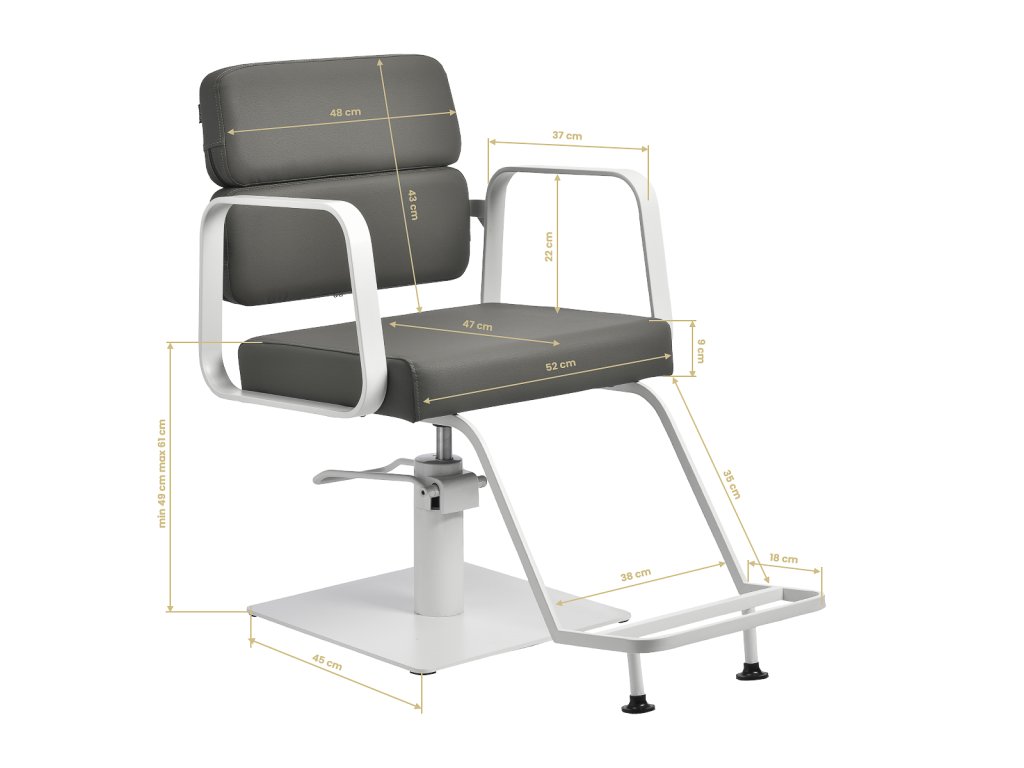 A Verona fodrász szék – fehér–szürke modern és funkcionális berendezés minden profi szalon számára. Ötvözi a kényelmet, stabilitást és elegáns dizájnt, amely kiemeli a belső tér reprezentatív jellegét.