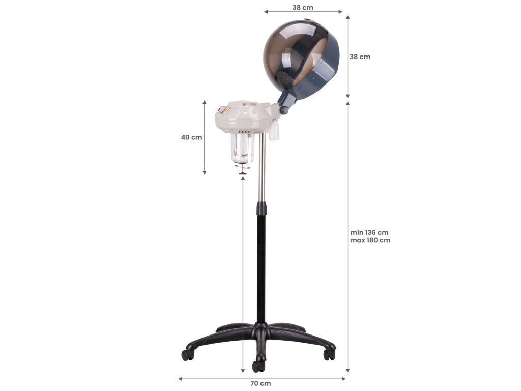 A kétfokozatú gőzszabályozás lehetővé teszi a munkafolyamat személyre szabását a vendég hajtípusához és a kezelések típusához igazodva. Az időzítő 0–60 perc között állítható, így pontosan szabályozható az alkalmazás időtartama.