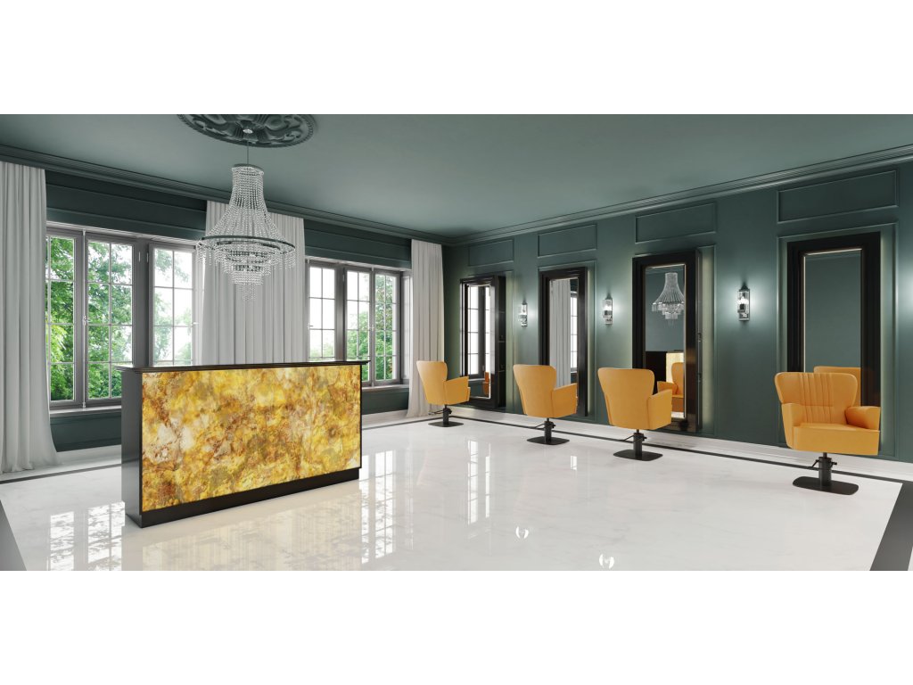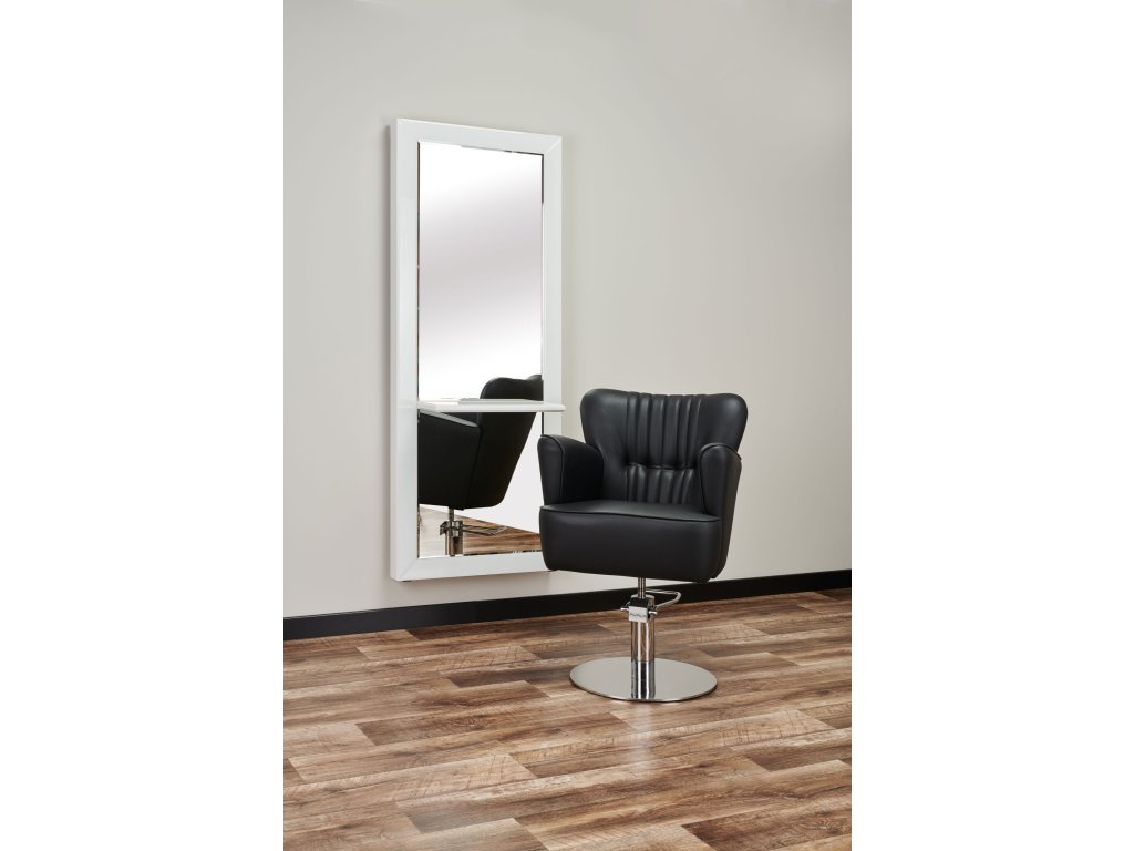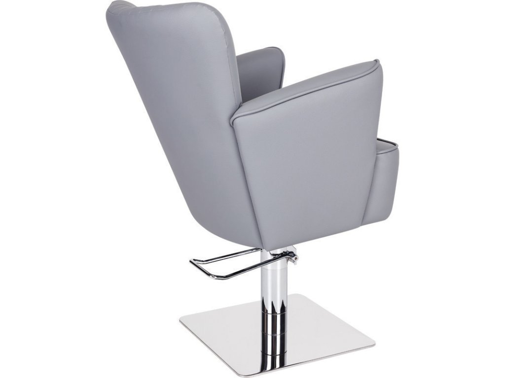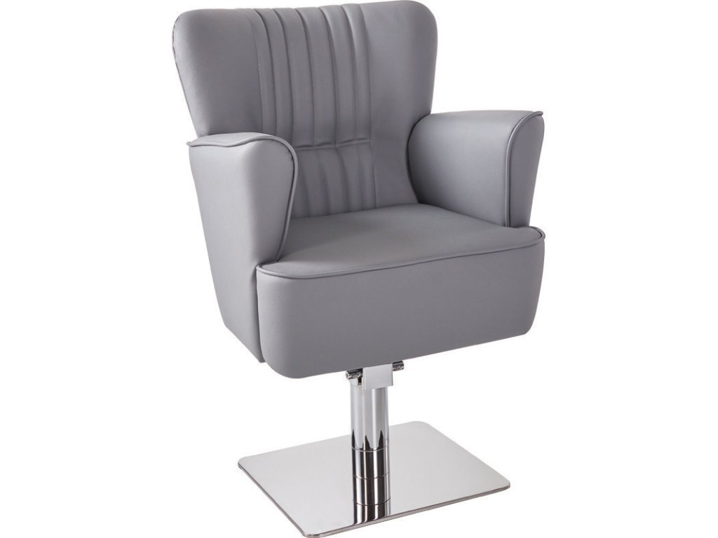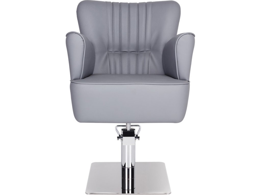A függőleges díszvarrással ellátott háttámla, a széles és puha ülőfelület, valamint a markáns kartámaszok kényelmes élményt biztosítanak a vendég számára, miközben a fodrász ergonomikus munkavégzését is támogatják.
