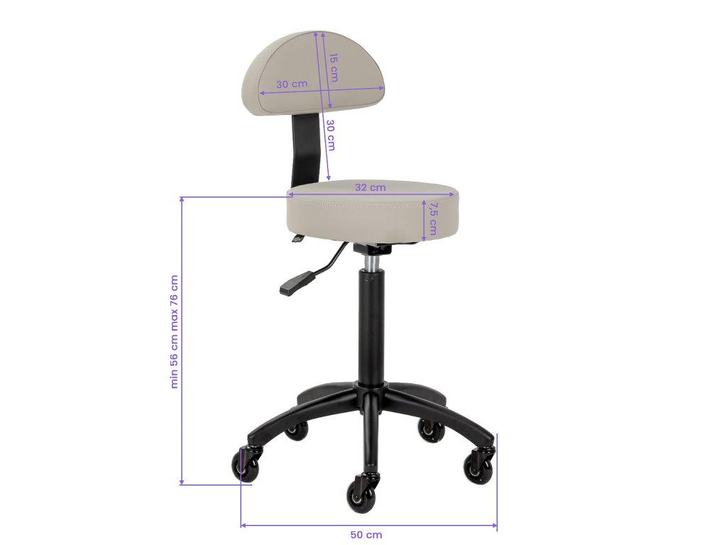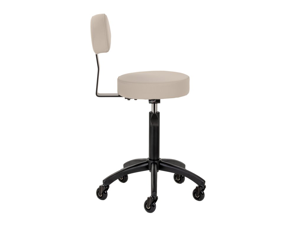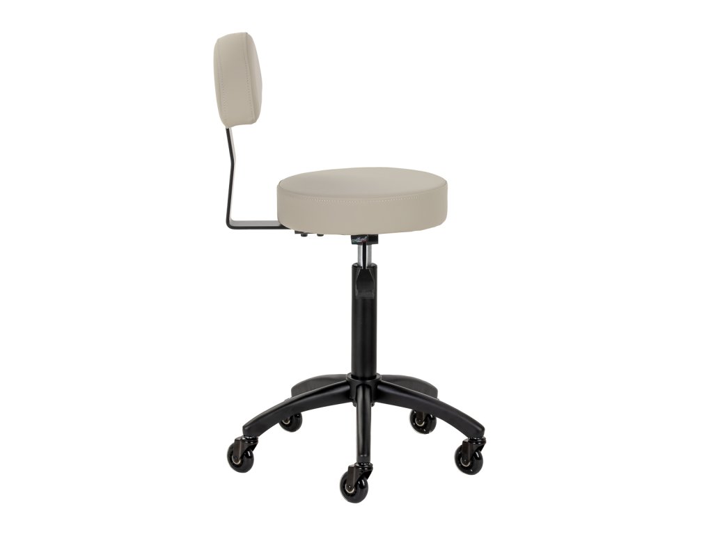 A formázott háttámla támogatja a helyes testtartást és csökkenti a gerinc fáradását még hosszú ülés során is. Az állítható magasságú ülőlap (56–76 cm) lehetővé teszi a pozíció testreszabását minden szakember számára. A 360°-ban forgatható mechanizmus szabadságot biztosít a mozgásban és növeli a munka hatékonyságát.