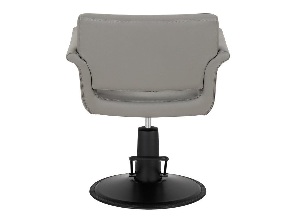 A szürke szintetikus bőr és a fekete, kerek talp elegáns, modern megjelenést kölcsönöz a széknek, amely illeszkedik klasszikus és kortárs szalonokba egyaránt. A felülete nedvességálló és könnyen tisztítható, így hosszú távon is megőrzi minőségi kinézetét.