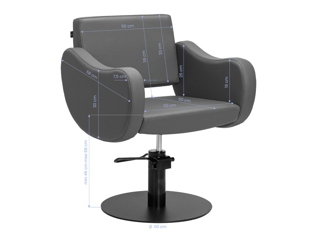 A hidraulikus rendszer segítségével a szék magassága 46–58 cm között könnyedén állítható, akár teljes terhelés mellett is, biztosítva az optimális munkapozíciót a fodrász és a kényelmet a vendég számára. A 360°-os forgathatóság könnyű hozzáférést biztosít minden oldalról, míg a megfelelően elhelyezett kartámaszok hozzájárulnak a helyes testtartáshoz.