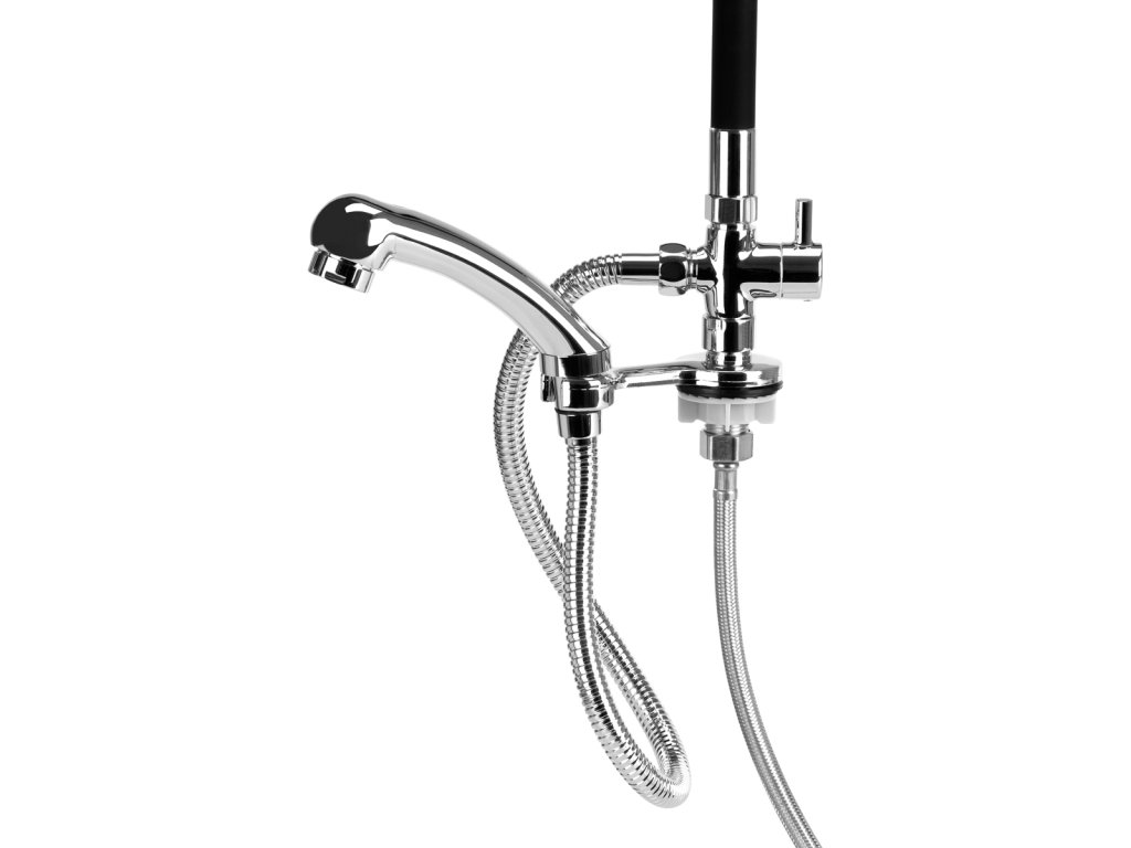 A keverőcsaptelep esőztető zuhannyal nélkülözhetetlen tartozék minden professzionális fodrászszalon számára. A csaptelep rozsdamentes, acélbetétes csatlakozótömlőkkel van felszerelve, amelyek garantálják a hosszú élettartamot és a kopásállóságot.