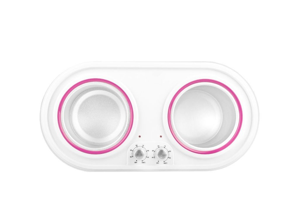A két edényes fém gyantamelegítő gép egy rendkívül praktikus és megbízható eszköz szalonok számára, akik különböző típusú konzervgyantákkal dolgoznak. A készülék egyidejűleg képes 1 db 400 ml-es és 1 db 800 ml-es konzervgyanta felmelegítésére, így ideális választás nagy forgalmú kozmetikai szalonokba is.