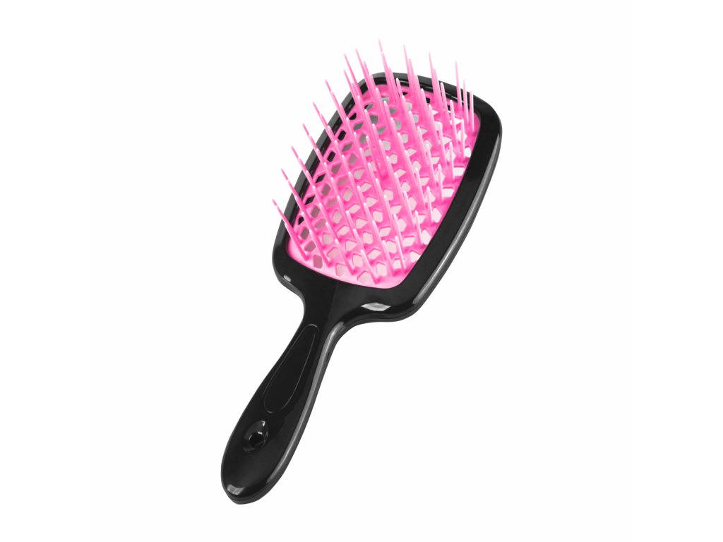 A HS hajkefe fekete-rózsaszín színben ideális választás minden hajtípushoz, legyen szó egyenes, hullámos vagy göndör hajról. A kefe speciális rovátkás és lyukacsos kialakítása nemcsak a tökéletes hajkibontást teszi lehetővé húzás vagy fájdalom nélkül, hanem segíti a levegő egyenletes áramlását hajszárítás közben is.