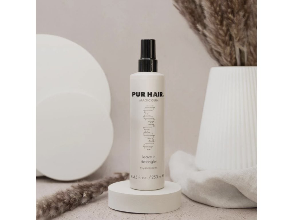A PUR HAIR Magic Gum Leave-In Detangler Spray egy könnyű, azonnali hatású hajkondicionáló spray, amely megkönnyíti a kifésülést, puhává és kezelhetővé teszi a hajat.