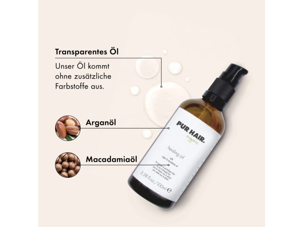 A PUR HAIR Organic Healing Oil egy luxus hajápoló elixír, amely az argán- és makadámiaolaj erejét ötvözi a haj intenzív táplálásáért, ragyogó fényéért és selymes puhaságáért – elnehezítés nélkül.