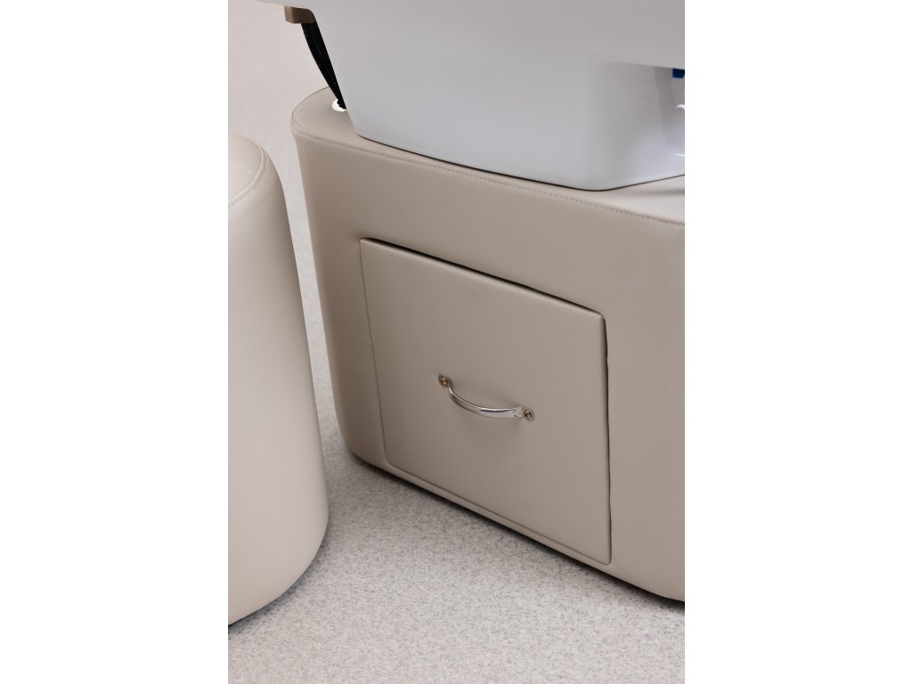 Ez a bézs színű Head SPA kezelőágy kerámia mosdótállal kifejezetten a modern fodrász szalonok, szépségszalonok és wellness központok igényei szerint lett megtervezve. A luxus kivitelű nyugágy ötvözi a kényelmet, az eleganciát és a funkcionalitást, hogy vendégei maximálisan élvezhessék a head spa, fejbőrápolási és hajkezelési szolgáltatásokat.