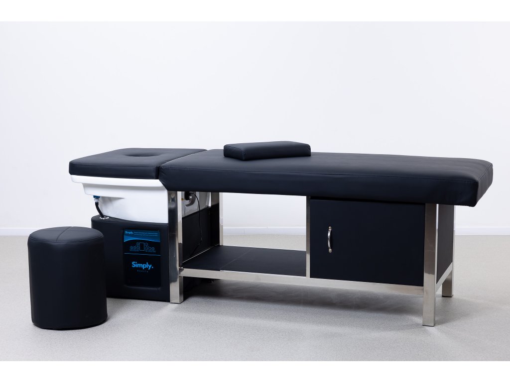 A Head Spa nyugágy alján tárolóhely is található, ahol kényelmesen elhelyezhetők az eszközök és kozmetikumok. Ez a multifunkciós ágy akár kozmetikai kezelésekhez is használható, így még sokoldalúbbá válik.