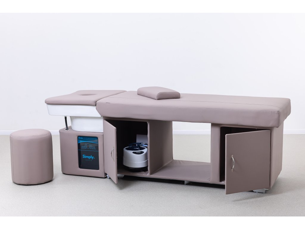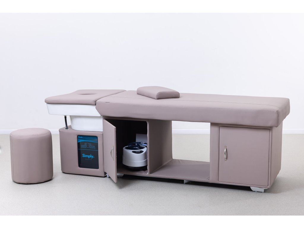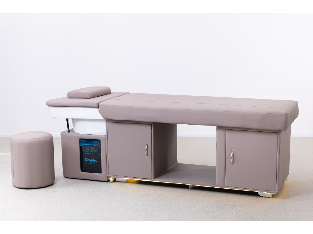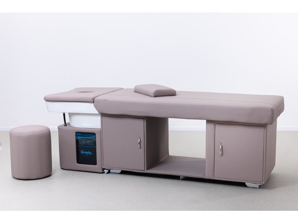 Ez a head spa kezelőágy nemcsak nyugtató és esztétikus megjelenésű, hanem számos funkcióval is rendelkezik, hogy támogassa a hatékony munkavégzést és a vendégek maximális kényelmét.