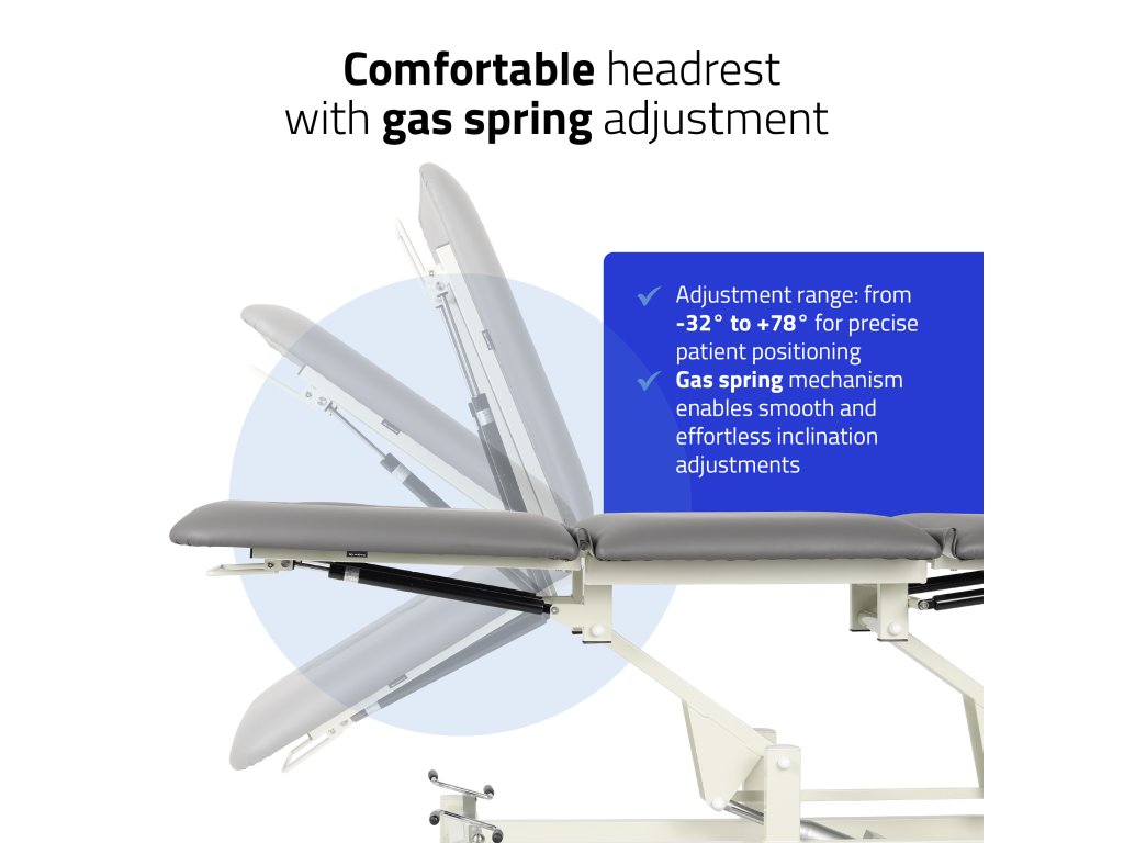Állítható fejrész gázrugóval: -32° és +78° között, ergonomikus arckivágással
