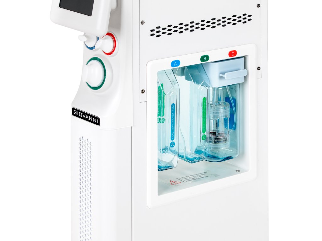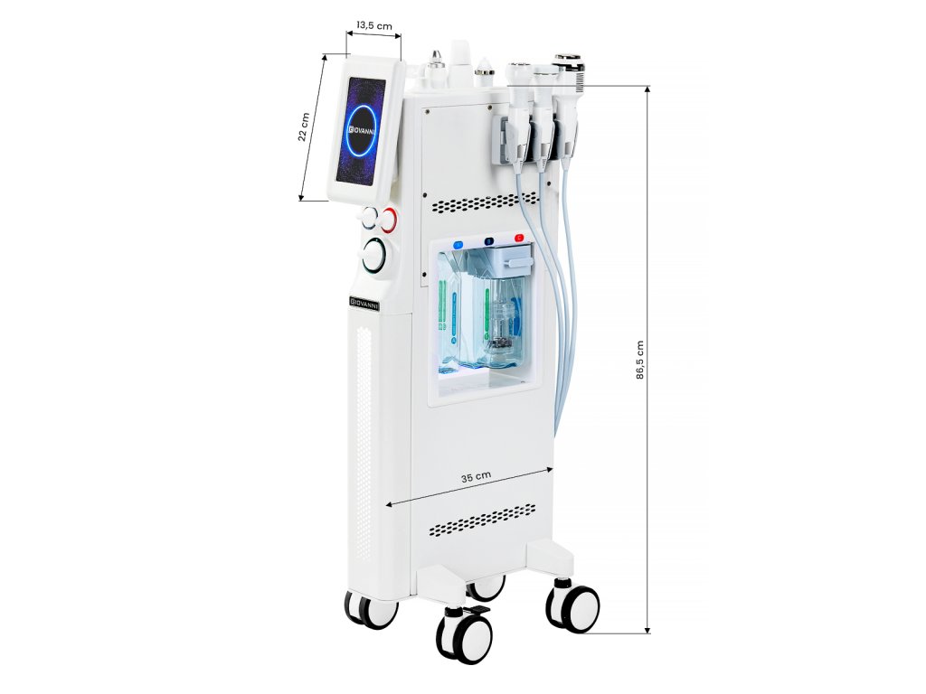 A Hydra Pro 6 modern érintőképernyővel rendelkezik, amely lehetővé teszi az egyes funkciók gyors és intuitív beállítását. Kompakt kialakítása és mobilitása megkönnyíti a készülék használatát a szalonon belül. A víz- és oldattartály-rendszer, valamint a praktikus kiegészítők kényelmes és hatékony munkavégzést biztosítanak.