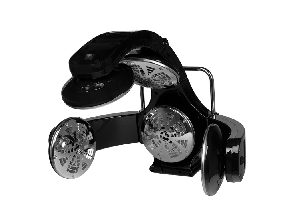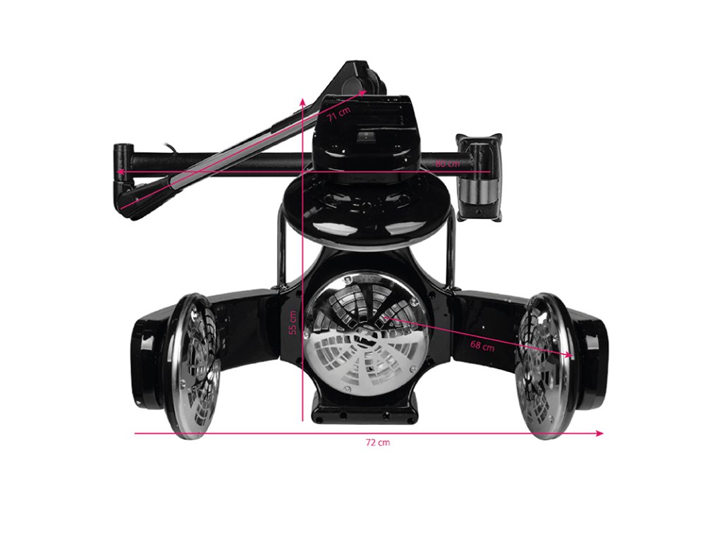 A készülék modern, fekete kivitelben kapható, ami stílusosan illeszkedik bármely fodrászszalon berendezéséhez. A GABBIANO 868A elérhető állványos és függeszthető változatban, így a szalon adottságaihoz igazítható a használata.