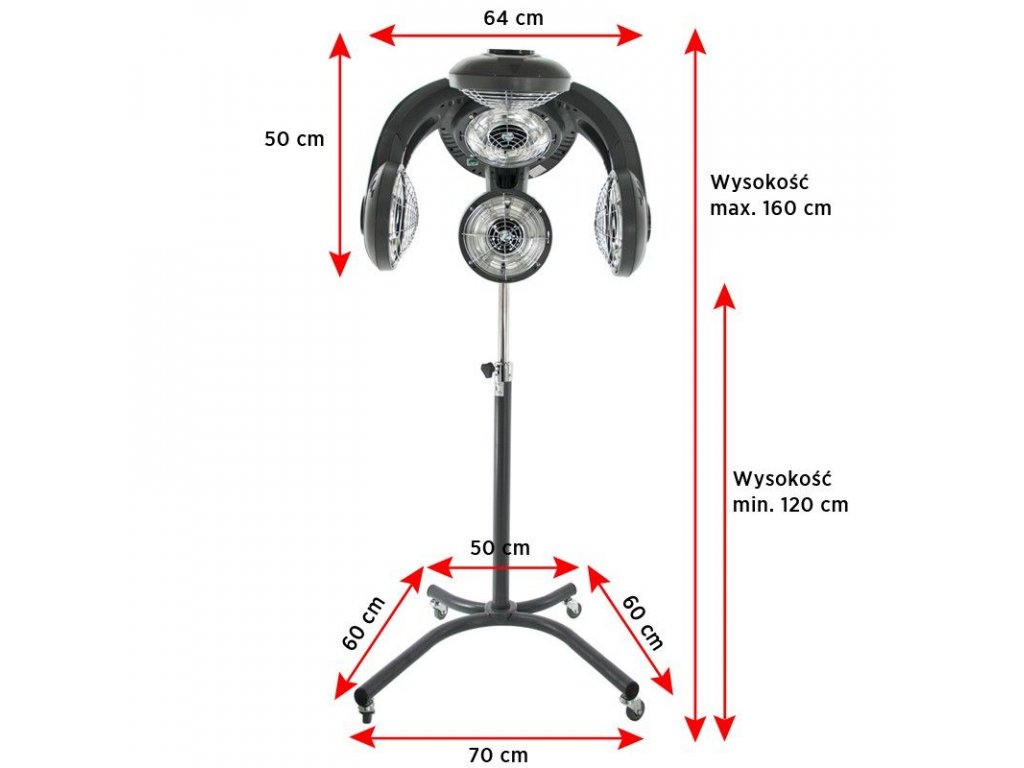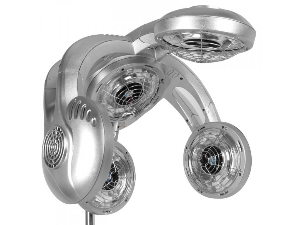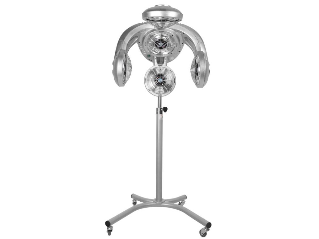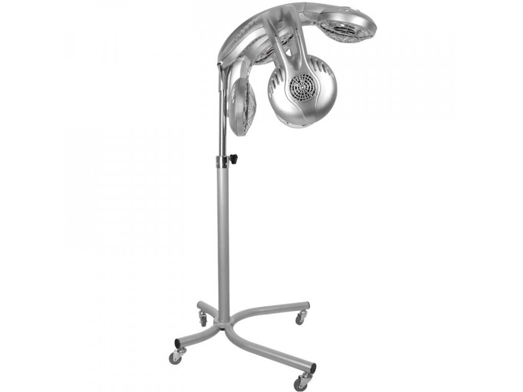 A készülék strapabíró műanyag házzal, modern ezüst dizájnnal, valamint állítható magasságú állvánnyal (142–162 cm) és kerekekkel ellátott stabil talppal készül, amely biztosítja a mobilitást és az ergonomikus használatot bármilyen fodrász szalonban.