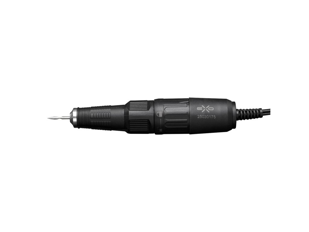 A fordulatszám 5 000–35 000 RPM között fokozatmentesen szabályozható a kezelőpanel segítségével, a zöld jelzőfény pedig mutatja a készülék működésre kész állapotát. A könnyű, ergonomikus kialakítású fej Twist-Lock rendszerrel rendelkezik, amely lehetővé teszi a frézek gyors és egyszerű cseréjét egyetlen mozdulattal.