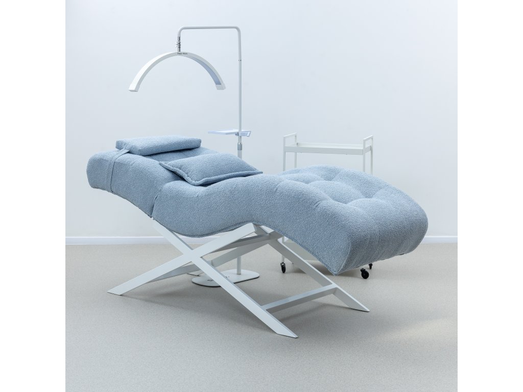 Az ágy teljesen testreszabható – választható lábszín: fehér, fekete, arany vagy ezüst. A hátrész 15 fokban dönthető, így ideális különböző kezelésekhez, mint például szempilla-hosszabbítás, arckezelés vagy szemöldökformázás.