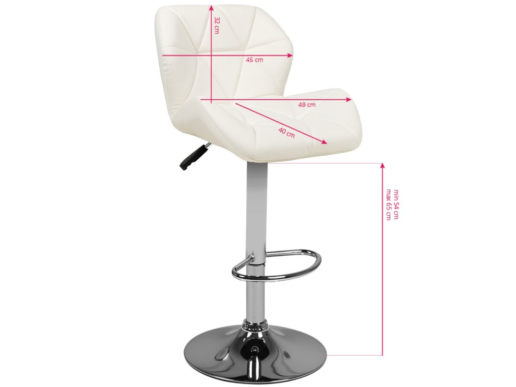 A pneumatikus gázliftes emelő lehetővé teszi az ülésmagasság fokozatmentes beállítását, így mindig a megfelelő pozícióban ülhet. A 360°-ban forgatható ülés növeli a funkcionalitást és kényelmet a mindennapi használat során. A krómozott láb és lábazat, valamint a csúszásmentes gumitalp garantálja a stabilitást és tartósságot.