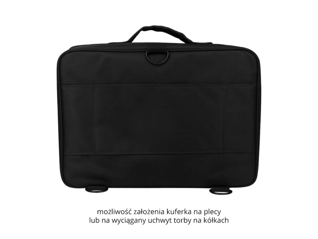 A belső tér állítható távtartókkal van ellátva, így könnyedén testre szabható a különböző eszközök biztonságos elhelyezéséhez. A kézi fogantyú és a levehető vállpánt pedig kényelmes hordozást biztosít akár kézben, akár vállon viselve.