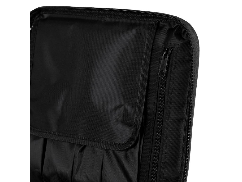 A fedele több zsebbel és rekesszel is rendelkezik, amelyeket cipzár és tépőzár zár le – ezek kiválóan alkalmasak laposabb kiegészítők, például ecsetek, szerszámok vagy jegyzetek tárolására. Ez a funkcionális kialakítás lehetővé teszi, hogy minden szükséges eszköz kéznél legyen, anélkül hogy keresgélni kellene.