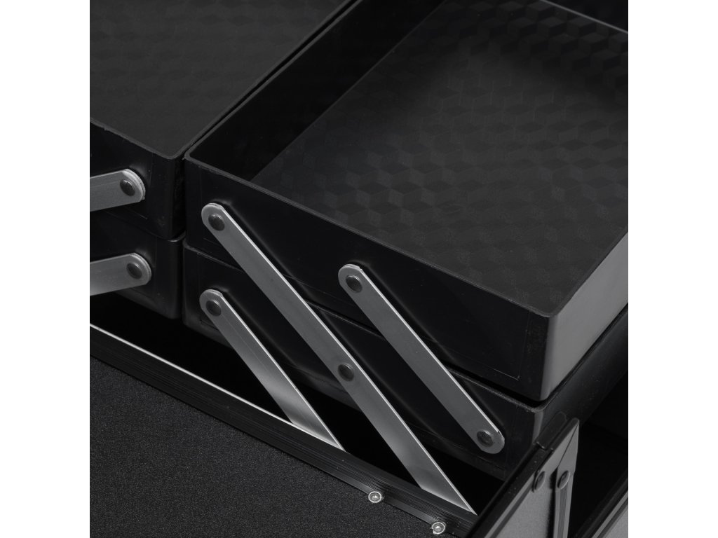 A Simply 41 kozmetikai bőrönd fekete színben stílusos és funkcionális megoldást kínál minden kozmetikus, stylist és körömdizájner számára. Ideális mindennapi használatra szalonban vagy mobil munkavégzés közben, hiszen biztosítja a szükséges eszközök átlátható rendszerezését és biztonságos tárolását.