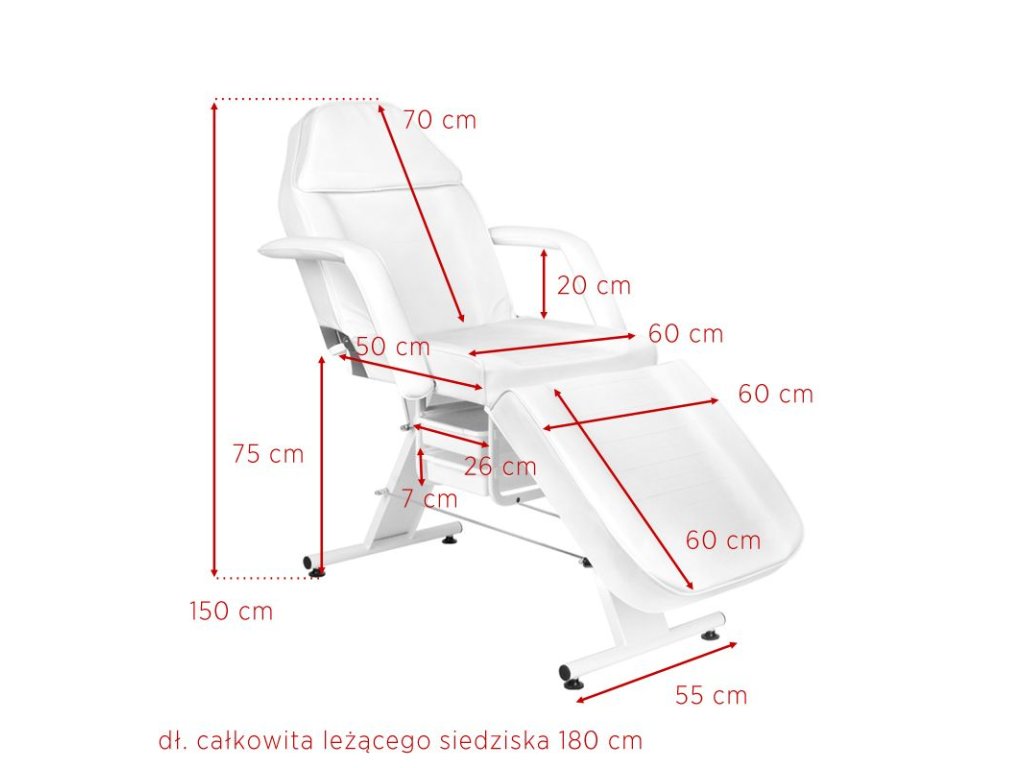 A szék fejtámlájában kialakított arclyukkal rendelkezik, így masszázshoz is ideális, a hozzá tartozó dugóval pedig bármikor lezárható. Az állítható háttámla és lábrész lehetővé teszi a pozíció személyre szabását. A kivehető karfák megkönnyítik a beülést, a két oldalsó tálca pedig kényelmes helyet biztosít az eszközök vagy kozmetikumok számára.