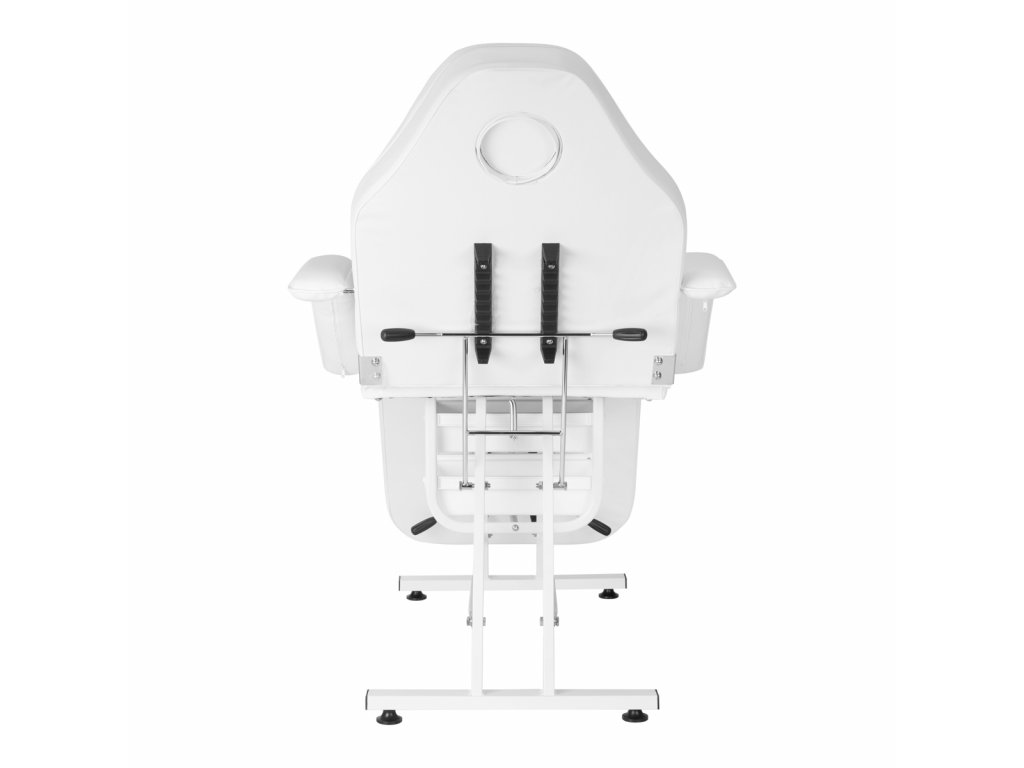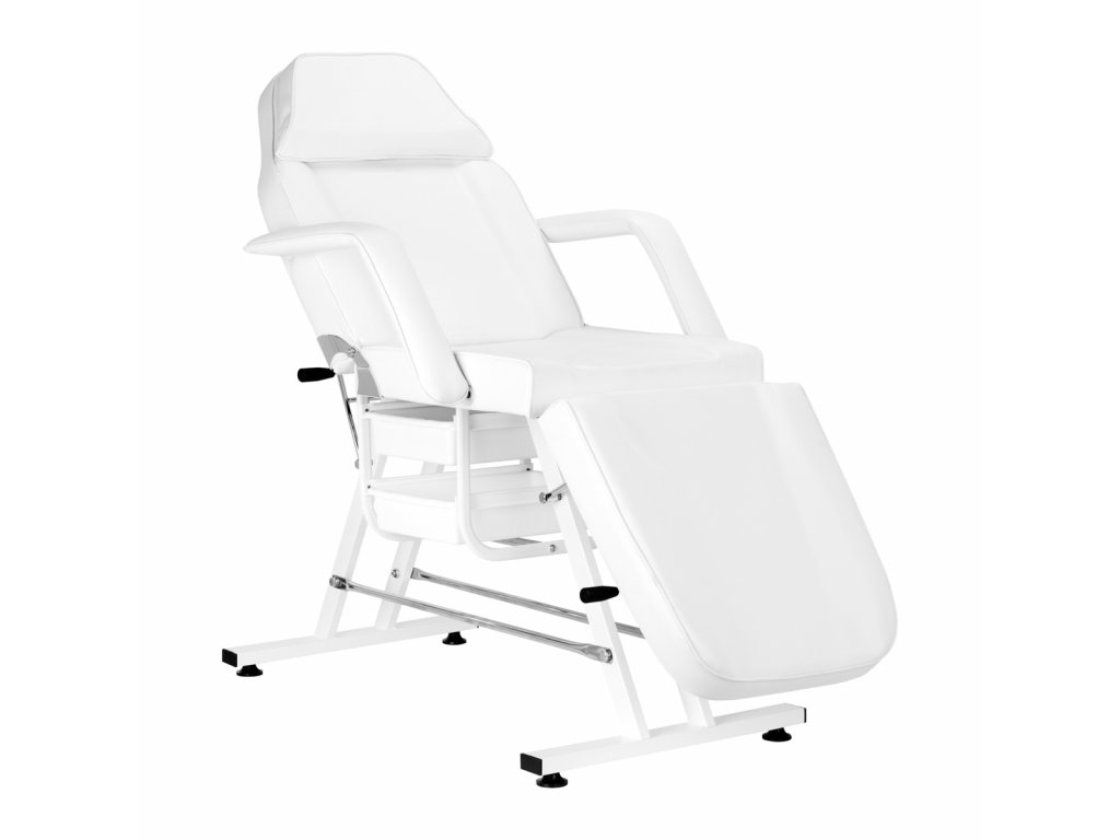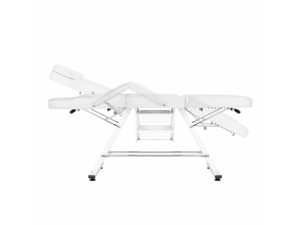 Ez a kozmetikai kezelőágy – fehér tökéletes választás szépségszalonok, masszázsstúdiók és sminkszobák professzionális felszereléséhez. Az állítható háttámlával és lábtámasszal ellátott ágy lehetővé teszi a vendég kényelmes pozicionálását a különböző típusú kezelésekhez.