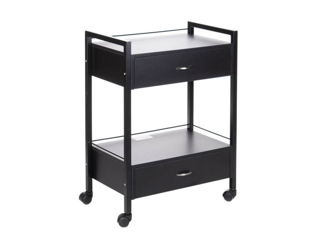 A kocsi széles felső munkafelülete kényelmes helyet kínál a leggyakrabban használt kozmetikai eszközök elhelyezésére. Két fiókja lehetővé teszi a kisebb kiegészítők, kellékek rendszerezett tárolását. Mobil kialakítása révén egyszerűen mozgatható a szalonon belül, így mindig kéznél lehet, ahol szükség van rá.