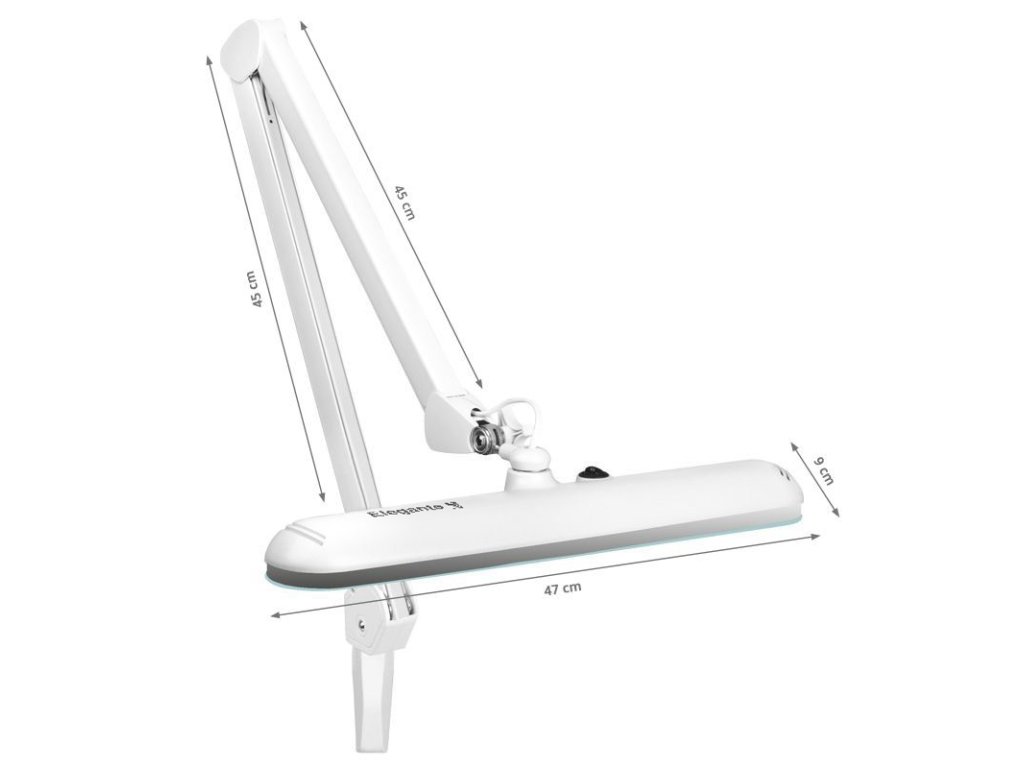 Az ELEGANTE 801-SZ fehér színű kozmetikai LED lámpa a precíz és részletgazdag munkavégzéshez készült. Modern kialakítása, széles fényfeje és állítható fényerő- és színhőmérséklet teszi tökéletessé a kozmetikai szalonok, szépségszalonok, fogászati vagy állatorvosi rendelők számára.