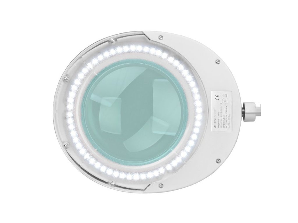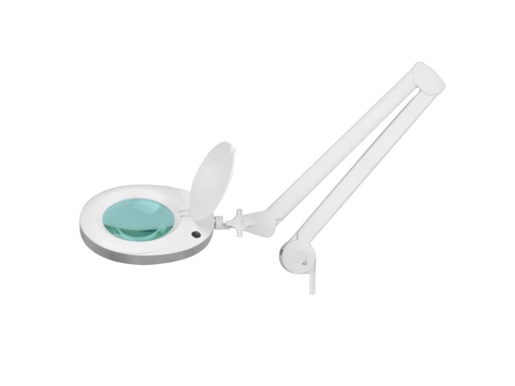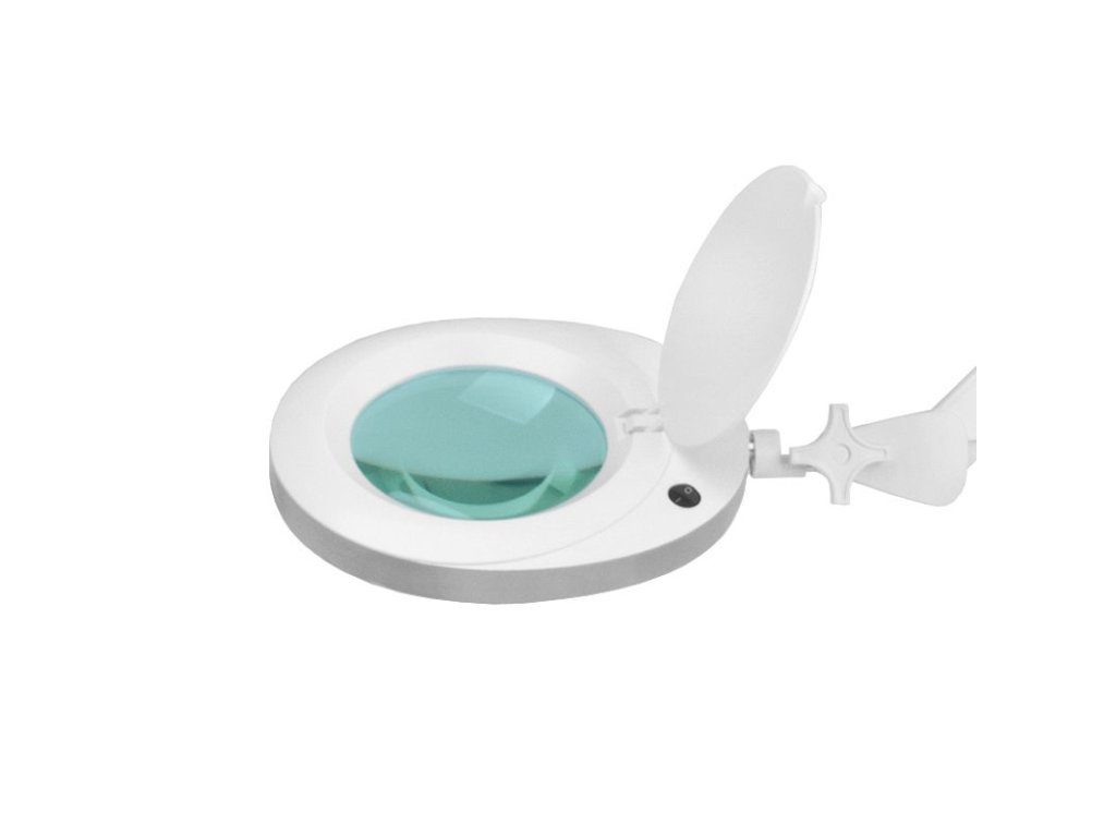 A BeautyOne ELEGANTE 6025 fehér LED kozmetikai lámpa nagyítóval és elegáns kör alakú állvánnyal tökéletes választás részletes, precíziós kezelésekhez. A beépített 5 dioptriás nagyítóval ellátott 12 cm átmérőjű lencse lehetővé teszi a bőrfelületek részletes vizsgálatát, miközben a 60 energiatakarékos LED dióda 520 lumen fényerősséggel biztosítja a megfelelő megvilágítást.