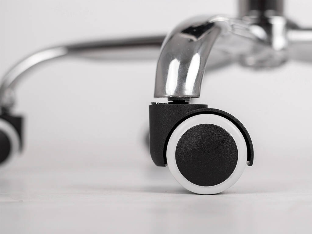 A gumírozott PU bevonatú görgők halk és sima mozgást biztosítanak, miközben kímélik a padlóburkolatot. A szék súlya csupán 3,75 kg, de ennek ellenére akár 130 kg teherbírással rendelkezik – így könnyen mozgatható, mégis stabil.