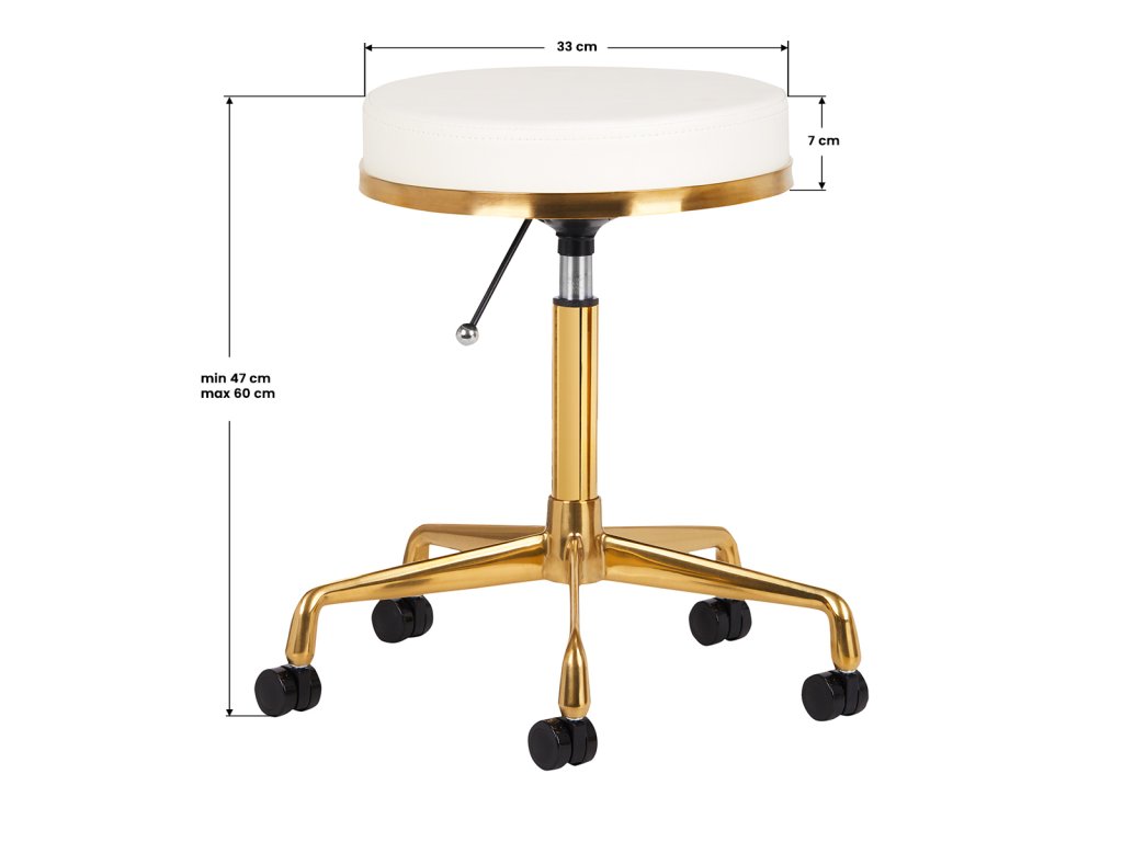 Az arany–fehér nyeregszék tökéletes választás, ha egy stílusos, kényelmes és jól funkcionáló forgószéket keresel szépségszalonba, fodrászatba, masszázsszalonba vagy wellness központba. Kialakítása ergonómiai szempontból is ideális, hiszen támogatja a helyes testtartást hosszabb munkavégzés során is.