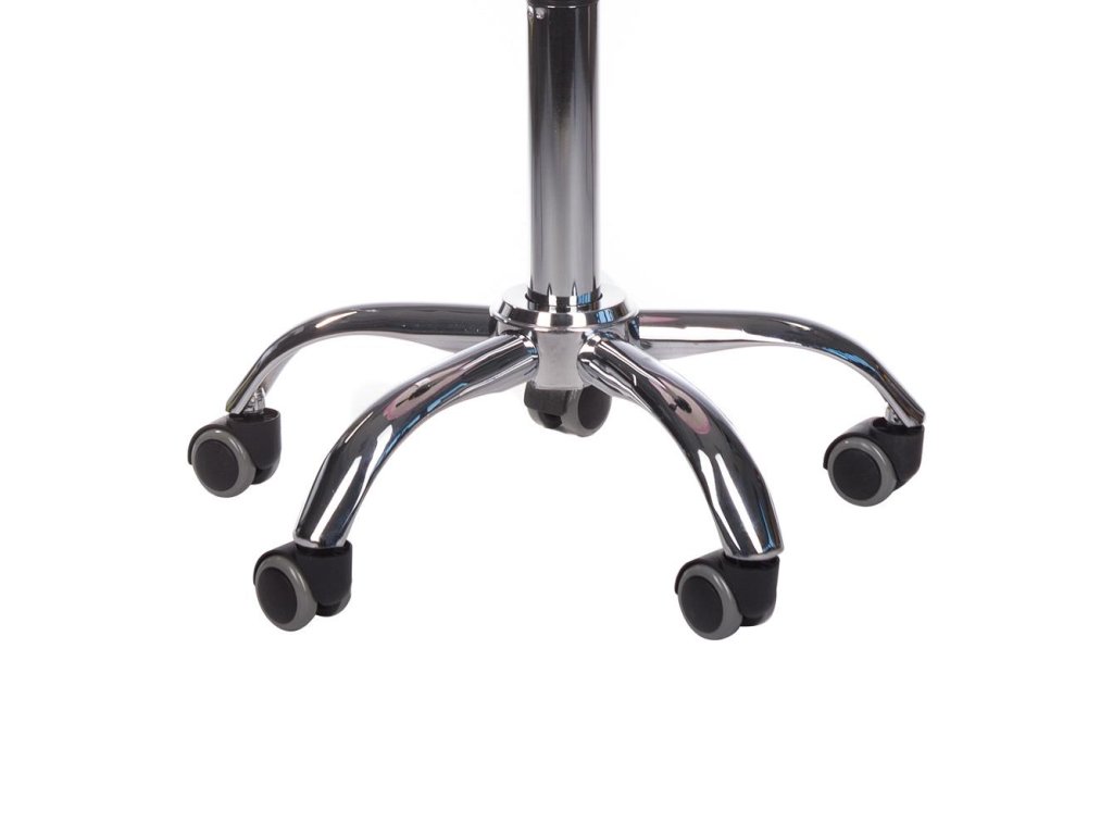 A háttámla extra komfortot nyújt, támogatva a hát alsó részét a hosszan tartó kezelések vagy munkafolyamatok során. Az ötágú, krómozott talapzat masszív, stabil alapot biztosít, a gördülékenyen mozgó kerekekkel pedig egyszerű a pozícióváltás.