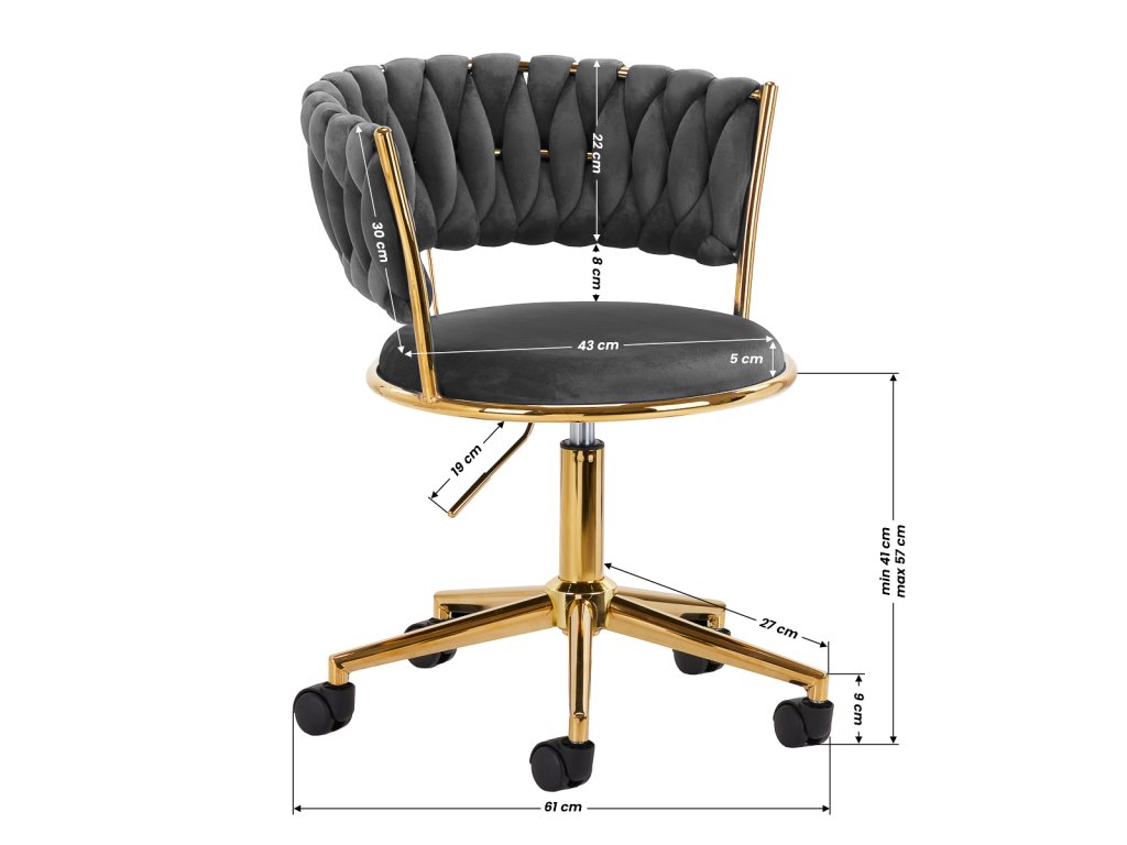A 4RICO QS-GW01G kozmetikai szék a modern szépségszalonok számára tervezett prémium bútordarab, amely ötvözi a stílust, kényelmet és funkcionalitást. A szürke bársony kárpitozás és az arany árnyalatú fém elemek elegáns megjelenést biztosítanak, amely harmonikusan illeszkedik bármilyen enteriőrbe.