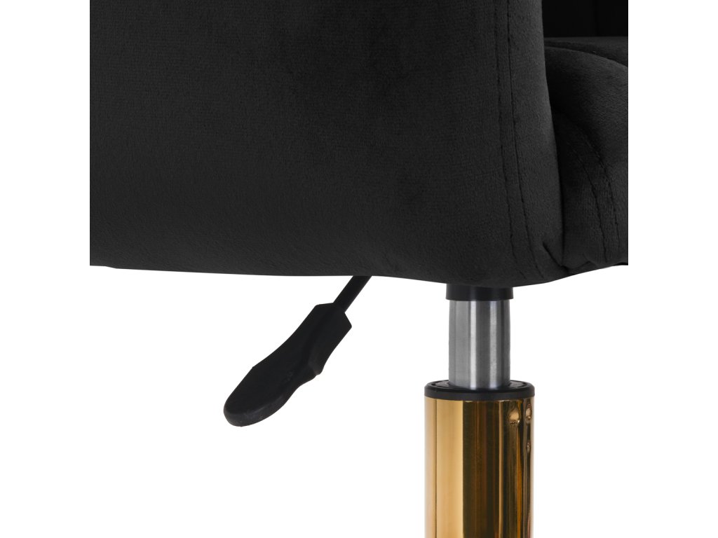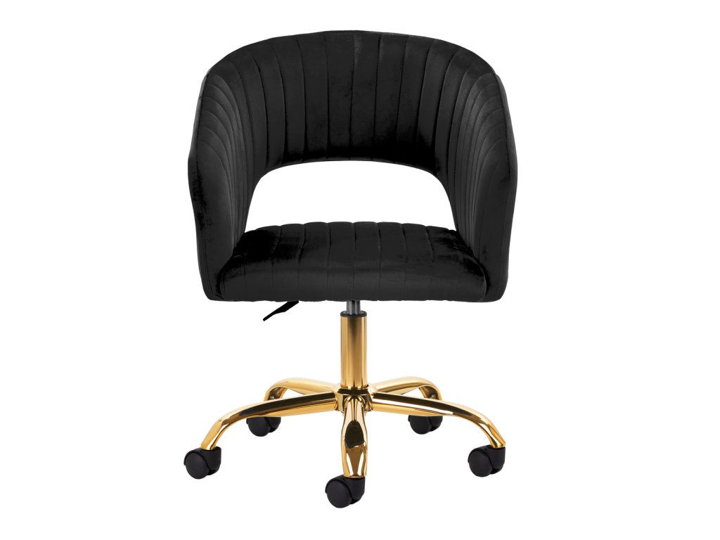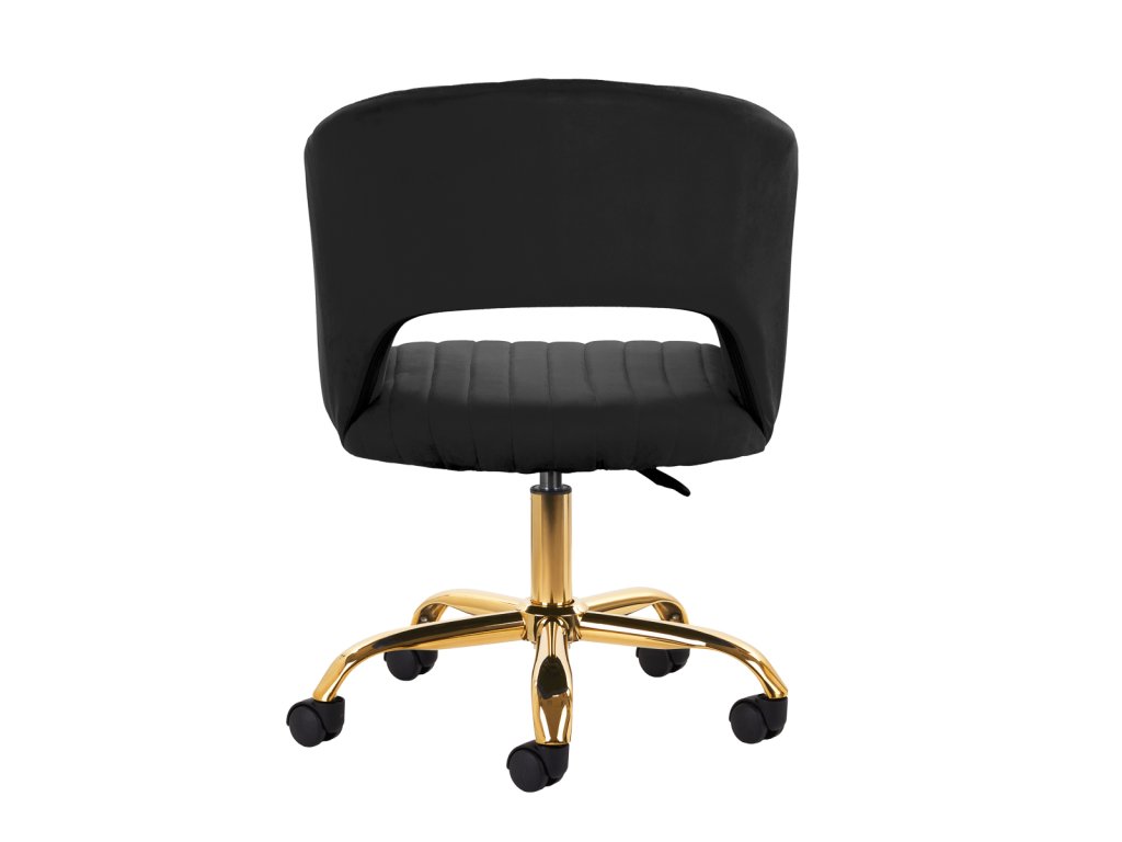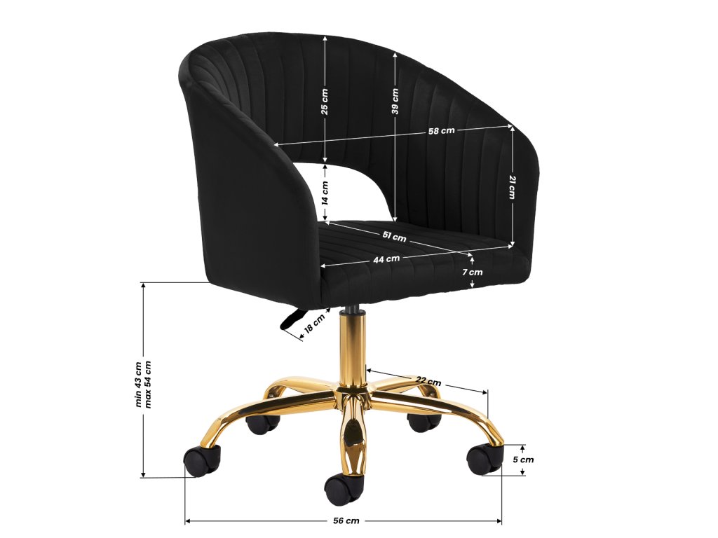 A fekete bársony bevonat finoman puha, elegáns megjelenést nyújt, míg az arany színű alap extra stílust ad a bútornak. A görgőkkel ellátott lábazat mobilitást biztosít, így a szék könnyen mozgatható, és a szalon napi használata során is rugalmasan használható.