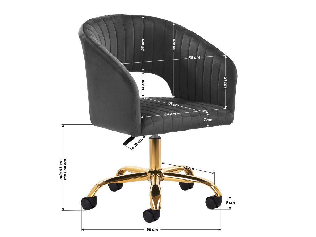 A szürke bársony és arany fémes elemek harmonikus kombinációja modern eleganciát kölcsönöz a széknek. Legyen szó szépségszalonról, műkörömszalonról, irodáról vagy otthoni sminkállomásról, ez a szék minden tér dísze lehet.