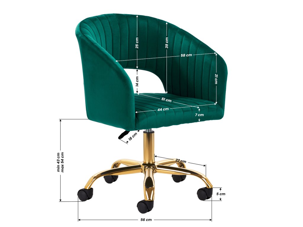 A 4RICO QS-OF212G kozmetikai szék – zöld bársony a funkcionalitás és a modern dizájn harmonikus egységét kínálja. A különleges zöld árnyalatú bársony kárpit egyedi karaktert kölcsönöz a bútornak, míg az aranyszínű, lakkozott fém talp eleganciát és időtlen stílust sugároz – bármilyen belső térbe kiválóan illeszkedik.