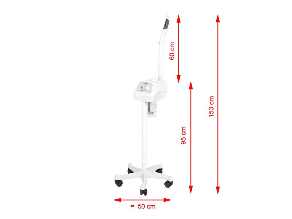 A beépített aromaterápiás funkció különleges élményt kínál, amely javítja a vendég komfortérzetét és elősegíti a relaxációt a kezelések alatt. A készülék gumírozott görgőkkel ellátott mobil állványa lehetővé teszi a könnyű mozgatást, így bármely kezelőhelyiségben rugalmasan használható.