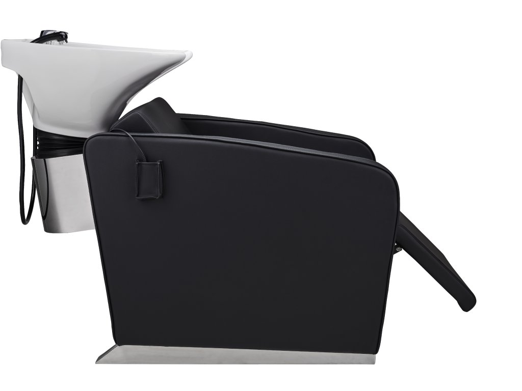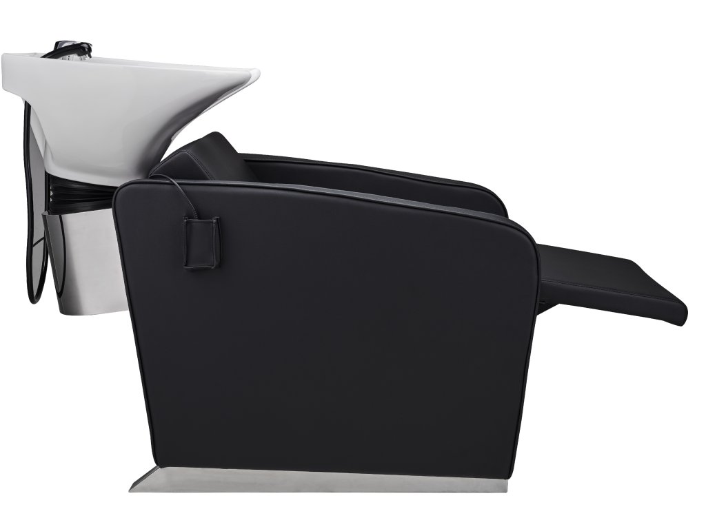 Az elektromosan vezérelt lábtartó lehetővé teszi a lábak fokozatmentes beállítását, ezáltal jelentősen növeli a vendég komfortérzetét a hajmosás során. A fejmosó része egy fehér színű kerámia mosdótál védő szilikon peremmel, amely biztonságos és higiénikus használatot biztosít.