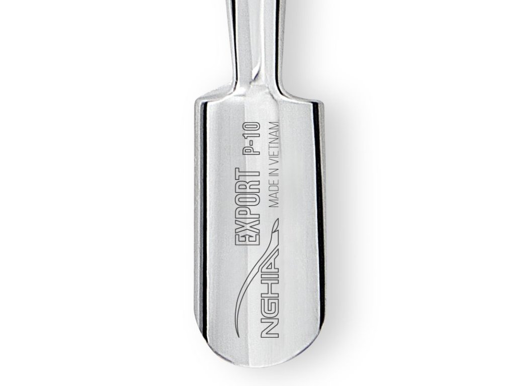 A NGHIA EXPORT P-10 fém bőrfeltoló kopytko elengedhetetlen eszköz minden manikűr és pedikűr szalonban. A professzionális manikűr eszköz precíz munkát biztosít a körömápolás során – ideális a körömágybőr finom eltávolítására, a bőrdarabok, gél- és akrilmaradványok óvatos lekaparására.