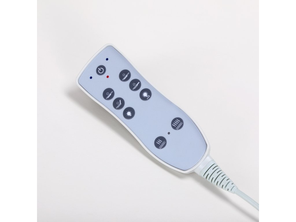 A háttámla elektromosan állítható távirányítóval, vízszintestől közel függőleges helyzetig (80°), míg a magasság szintén motorosan állítható 58–84 cm között. Az ágy kétféle cserélhető arcpárnát tartalmaz: az egyik teljesen zárt, a másik arckivágással rendelkezik a masszázsokhoz.