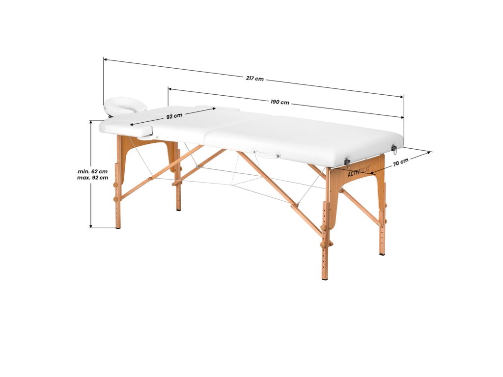 Ez a összecsukható masszázságy rendkívül praktikus: három szegmenses kialakításának köszönhetően a fejtámla külön emelhető, így háttámlaként is szolgál. A 5 cm vastag, közepesen kemény habszivacs és a vízálló, szennyeződés-taszító ökobőr borítás garantálják az ügyfelek kényelmét és a könnyű tisztíthatóságot.
