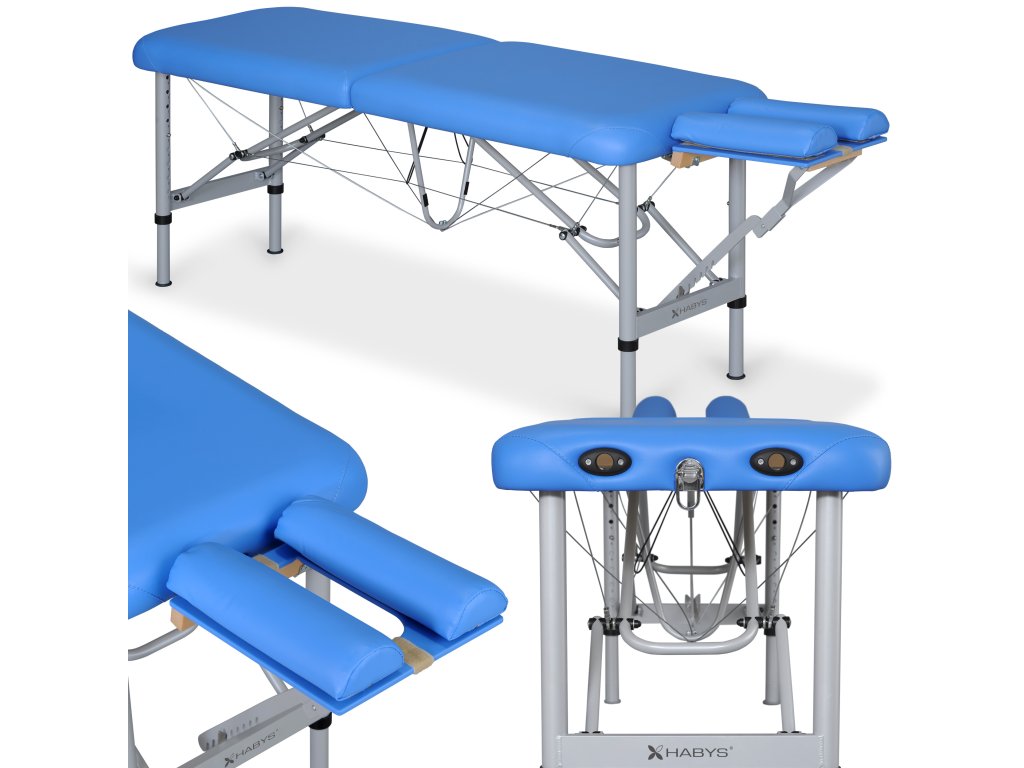 A masszázságy egyedülálló tulajdonságai közé tartozik az állítható fejtámla, kivehető párnákkal, a gyorsan állítható Quick Lock magasságmechanizmus, valamint a speciális stabilizáló támasz, amely növeli az asztallap stabilitását.