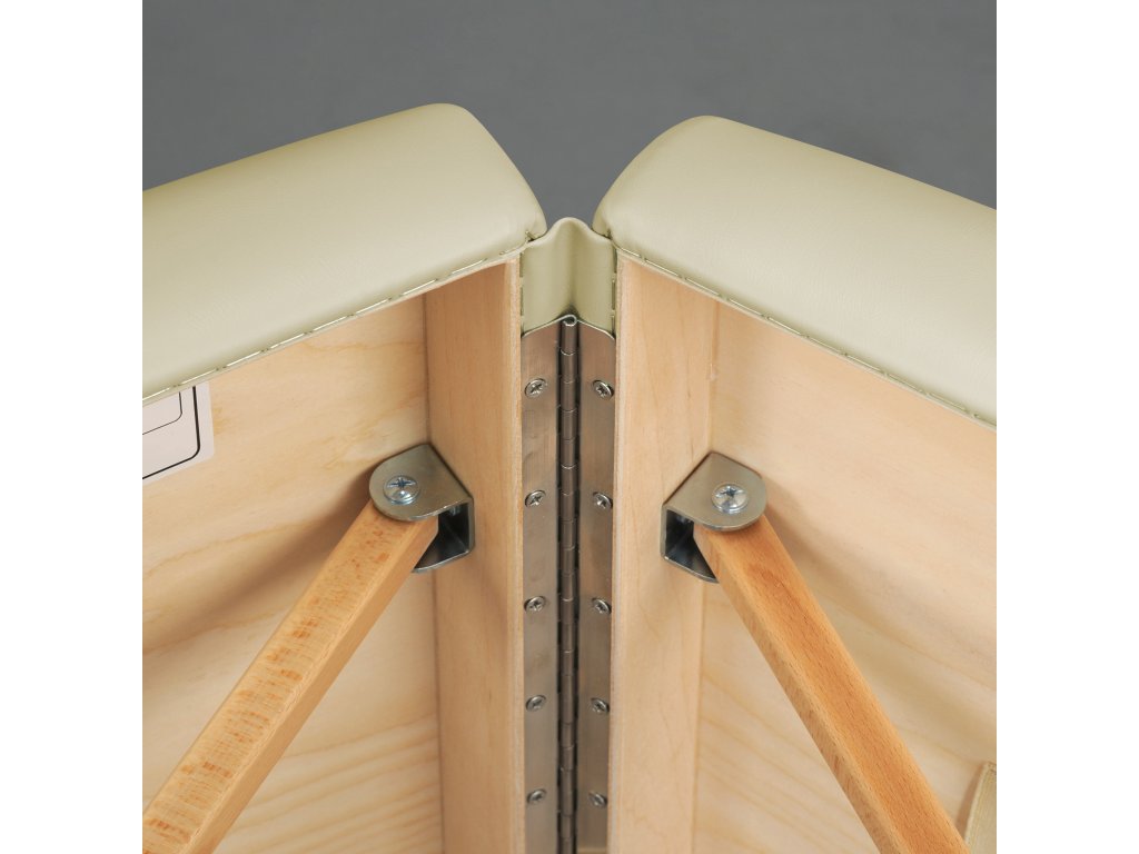 A Panda masszázságyat úgy tervezték, hogy ellenálljon a napi használat kihívásainak: masszív fa lábszerkezete csúszásmentes gumitalpakkal és acélbevonatú kötelekkel van megerősítve. A maratott lábak lehetővé teszik a precíz magasságállítást, a keresztrúd pedig tovább fokozza a stabilitást.