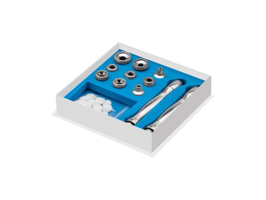 Az AM60 tartozékai között 9 különböző méretű gyémántfej található, valamint 2 fúvóka a fejcsatlakoztatáshoz, tömlő és minden szükséges kiegészítő egy egyszerűen kezelhető rendszerben. A készülék fehér színben érhető el, elegáns megjelenéssel.