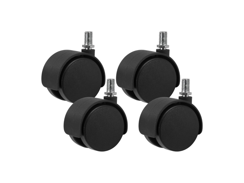 A 4 darabos műanyag görgőkészlet 8 mm-es menetes tüskével (M8) praktikus megoldás mobil bútorok, nagyító lámpák vagy szalonkocsik mozgatásához, ahol fontos a stabilitás és a könnyű áthelyezhetőség.