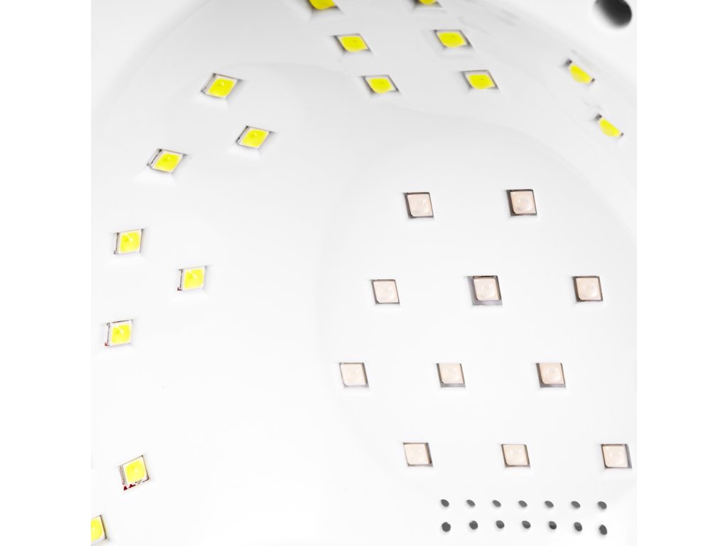 A lámpában 36 gondosan elhelyezett LED található, így nincsenek holt zónák, a szárítás egyenletes és hatékony minden ujjra. A teljesítmény 168W, amely ideálissá teszi a zselék, géllakkok és akril körömanyagok gyors kötéséhez.