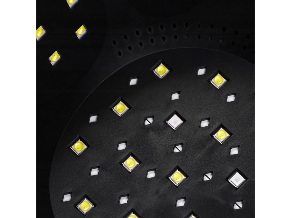 Ez a körömlámpa 42 LED-del van felszerelve, amelyek Dual LED technológiával működnek (365 és 405 nm-es hullámhossz), így biztosítva az egyenletes szárítást és árnyékmentes fényt minden típusú hibrid lakkhoz, zseléhez és más fényre kötő anyaghoz. A zárt box kialakítás hatékonyabb rögzítést tesz lehetővé, még a köröm nehezen elérhető részein is.